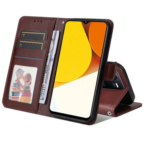 Para Vivo Y35 4G / Y22 / Y22S Jsm Funda de Cuero con Textura de Becerro (Marrón)