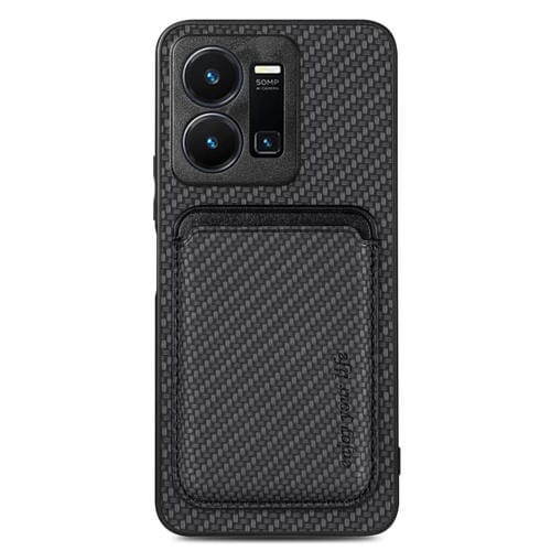 Para Vivo Y35 Tarjeta de Cuero de Fibra de Carbono Magsafe Case (Negro)