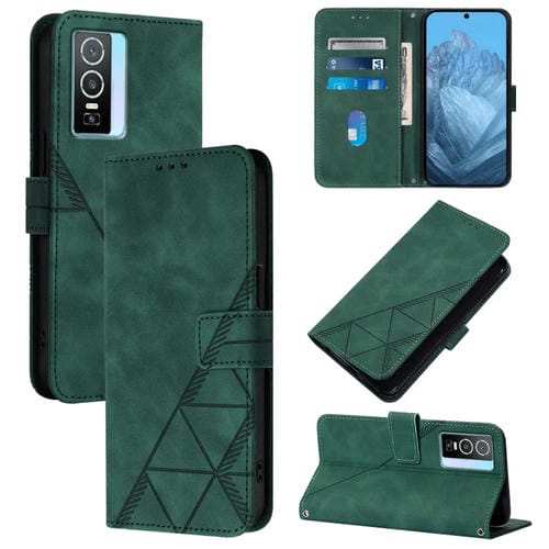 Para Vivo Y76 5G Crossbody Funda para Teléfono de Cuero con Tapa En Relieve 3D (Verde)