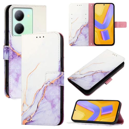 Para Vivo Y78 + / Y78 5G Global / V29 Lite Pt003 Funda para Teléfono de Cuero con Tapa con Patrón de Mármol (Blanco Púrpura)