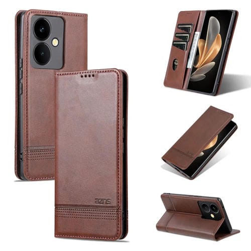 Para Vivo Y78 + / Y78 Global Azns Funda de Teléfono de Cuero con Textura de Becerro Magnético (Marrón Oscuro)