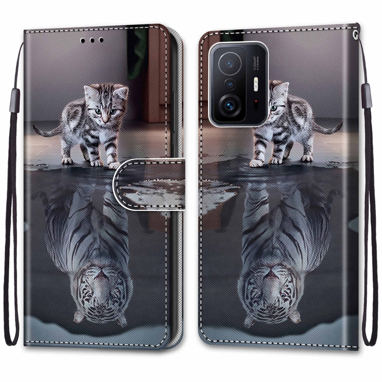 Para Xiaomi 11T / 11T Pro Coloree Dibujos de Cross Cross Texture Horizontal Flip de Cuero Teléfono con Titular y Tarjetas Slots & Wallet & Lanyard (Cat Se Convierte En Tigre)