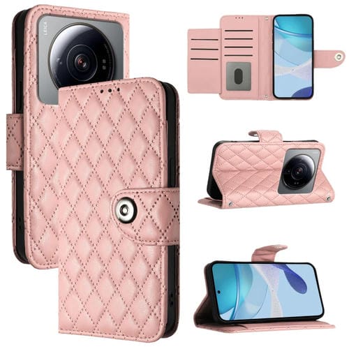 Para Xiaomi 12S Funda de Cuero con Tapa con Textura Ultra Rómbica y Cordón (Rosa Coral)