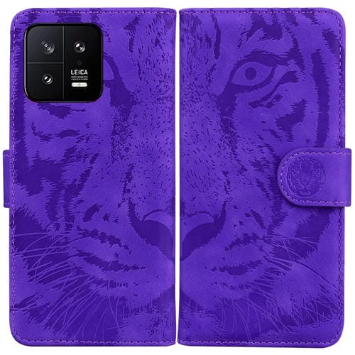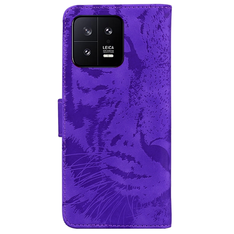 Para Xiaomi 13 5G Caja del Teléfono de Cuero con Estampado de Tigre En Relieve (Púrpura)