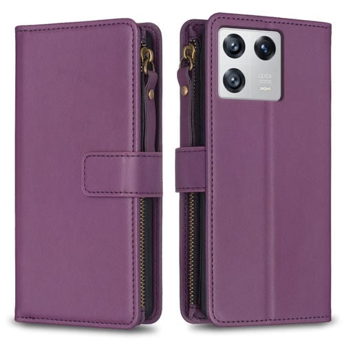 Para Xiaomi 13 9 Ranuras para Tarjetas Cremallera Cartera Funda de Cuero con Tapa para Teléfono (Morado Oscuro)
