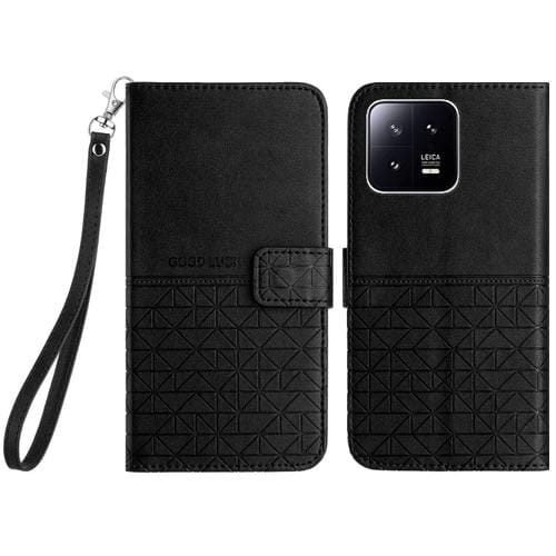 Para Xiaomi 13 Funda de Cuero con Textura Rómbica y Cordón (Negro)