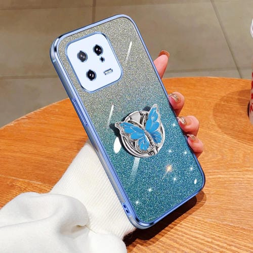 Para Xiaomi 13 Funda para Teléfono de TPU con Soporte de Mariposa con Brillo Degradado Plateado (Azul Sierra)