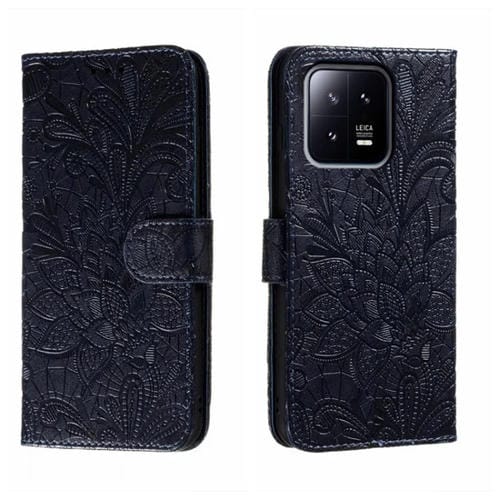 Para Xiaomi 13 Lace Flower Embossing Flip Funda de Cuero para Teléfono (Azul Oscuro)