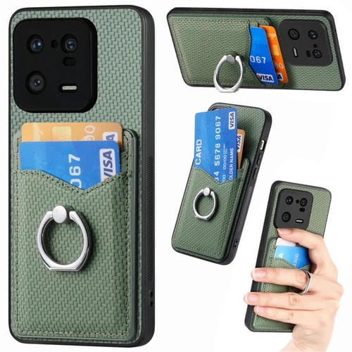 Para Xiaomi 13 Pro Carbon Fiber Card Wallet Ring Holder Phone Case (Verde)