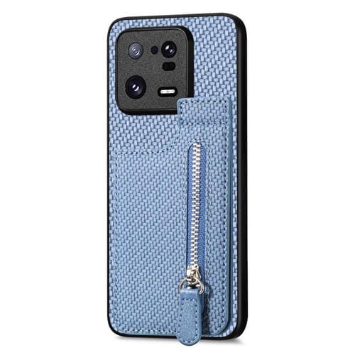 Para Xiaomi 13 Pro Carbon Fiber Vertical Flip Funda para Teléfono con Cremallera (Azul)