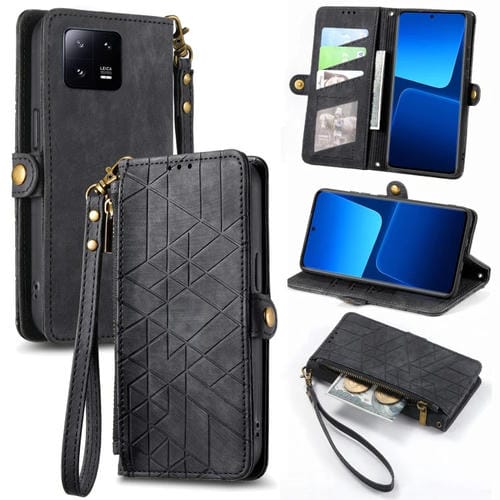 Para Xiaomi 13 Pro Estuche para Teléfono de Cuero con Cremallera Geométrica y Hebilla Lateral (Negro)