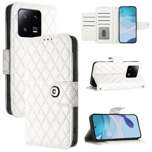 Para Xiaomi 13 Pro Funda de Cuero con Tapa con Textura Rómbica y Cordón (Blanco)
