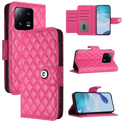 Para Xiaomi 13 Pro Funda de Teléfono de Cuero con Tapa con Textura Rómbica y Cordón (Rojo Rosa)
