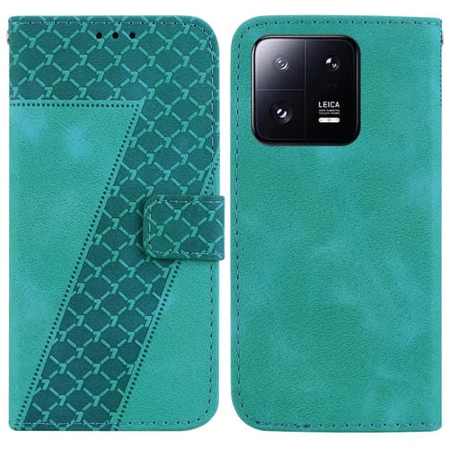 Para Xiaomi 13 Pro Funda de Teléfono de Cuero En Relieve En Forma de 7 (Verde)