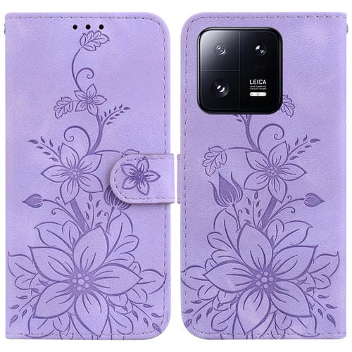 Para Xiaomi 13 Pro Lily Funda de Cuero para Teléfono En Relieve (Púrpura)