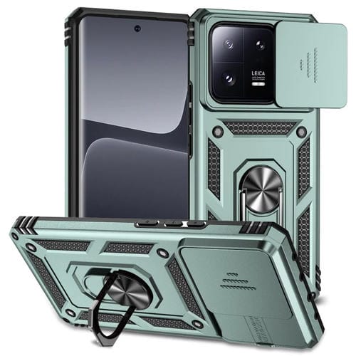 Para Xiaomi 13 Pro Sliding Camshield Holder Funda para Teléfono (Verde Oscuro)
