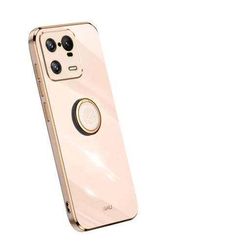 Para Xiaomi 13 Pro Xinli Straight Edge 6D Electroplate TPU Funda para Teléfono con Soporte para Anillo (Rosa)