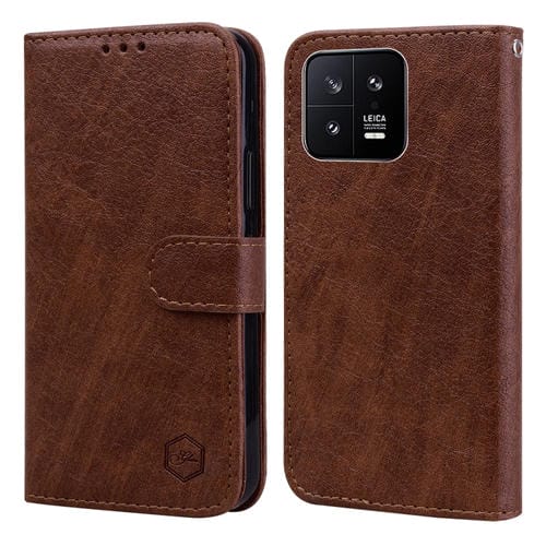 Para Xiaomi 13 Sensación de Piel Aceite Textura de Cuero Pu + TPU Funda para Teléfono (Marrón)