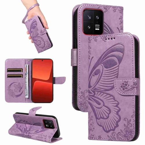 Para Xiaomi 13 Swallowtail Butterfly Funda de Teléfono de Cuero En Relieve (Púrpura)