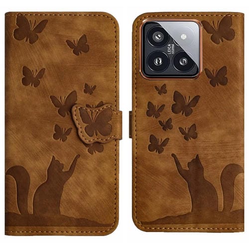 Para Xiaomi 14 Butterfly Cat Embossing Flip Funda De Cuero Para Teléfono (Marrón)