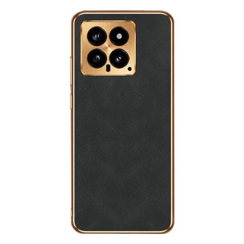 Para Xiaomi 14 Funda De Cuero De Piel De Cordero Galvanizada (Negro)