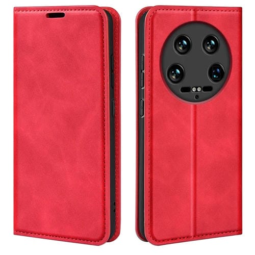 Para Xiaomi 14 Funda De Teléfono De Cuero Con Succión Magnética De Piel Ultra Retro (Rojo)