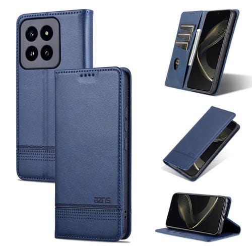 Para Xiaomi 14 Pro Azns Funda De Teléfono De Cuero Con Tapa Con Textura De Pantorrilla Magnética (Azul Oscuro)