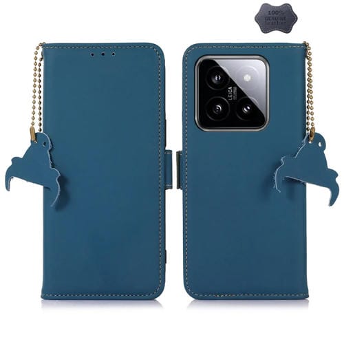 Para Xiaomi 14 Pro Funda De Teléfono De Cuero Rfid Magnética De Cuero Genuino (Azul)