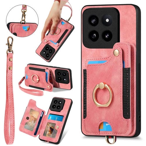 Para Xiaomi 14 Pro Funda Para Teléfono Con Billetera Rfid Con Anillo Con Sensación De Piel Retro (Rosa)