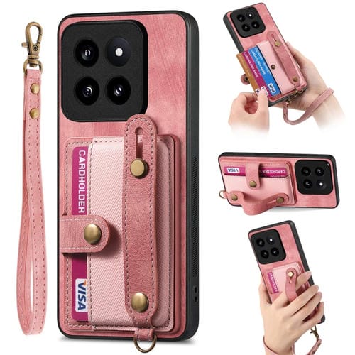 Para Xiaomi 14 Pro Retro Cross Muñequera Monedero Funda Trasera De Cuero Para Teléfono (Rosa)
