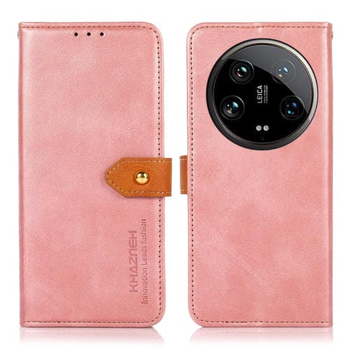 Para Xiaomi 14 Ultra Khazneh Funda Para Teléfono De Cuero Con Tapa Con Textura De Piel De Vaca (Oro Rosa)