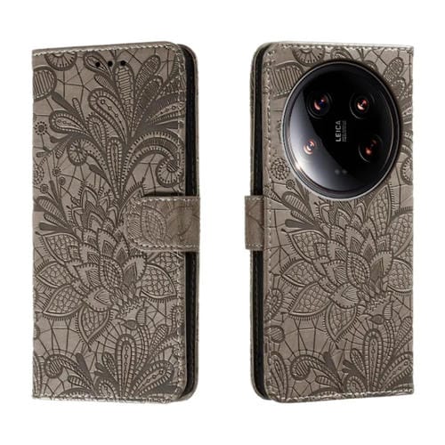Para Xiaomi 14 Ultra Lace Flower Embossed Flip Funda De Cuero Para Teléfono (Gris)