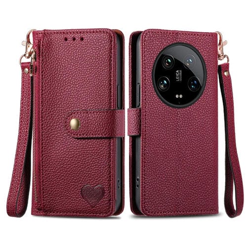 Para Xiaomi 14 Ultra Love Zipper Lanyard Funda De Cuero Para Teléfono (Rojo)