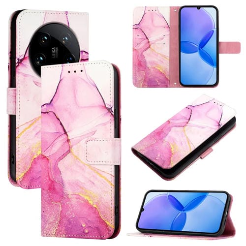 Para Xiaomi 14 Ultra Pt003 Funda Para Teléfono De Cuero Con Tapa Con Patrón De Mármol (Rosa, Morado Y Dorado)