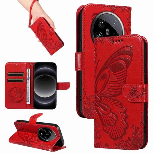 Para Xiaomi 14 Ultra Swallowtail Butterfly Funda De Cuero Para Teléfono En Relieve (Rojo)