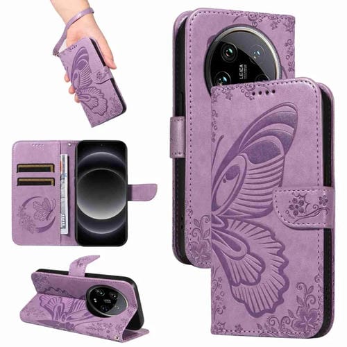 Para Xiaomi 14 Ultra Swallowtail Butterfly Funda De Teléfono De Cuero En Relieve (Púrpura)
