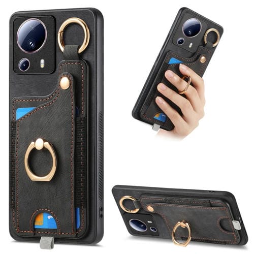 Para Xiaomi Civi 2 Funda para Teléfono con Bolsa para Tarjeta con Anillo y Sensación de Piel Retro con Lazo para Colgar (Negro)