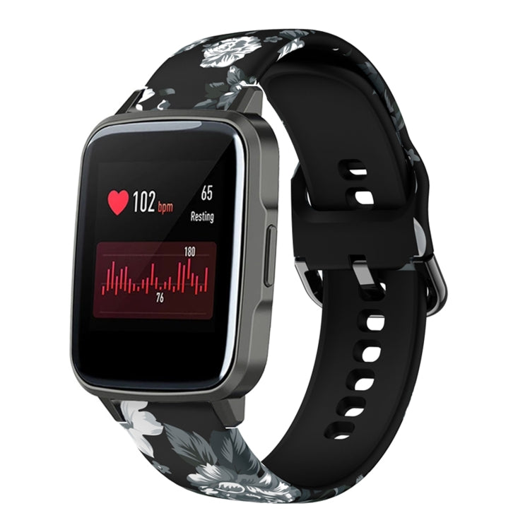 Para Xiaomi Haylou LS01 Banda de reloj de impresión de silicona (flor gris negro)