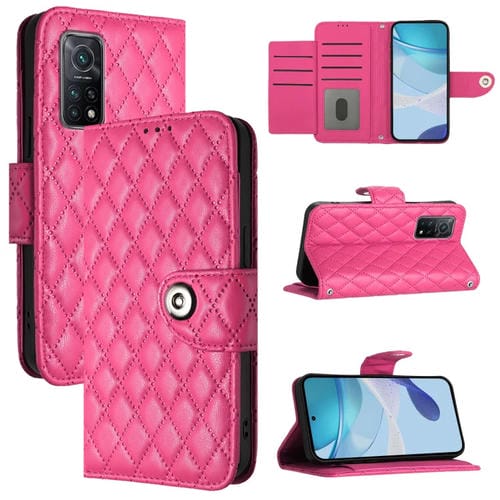 Para Xiaomi Mi 10T / 10T Pro 5G Funda de Cuero con Tapa con Textura Romboidal y Cordón (Rojo Rosa)