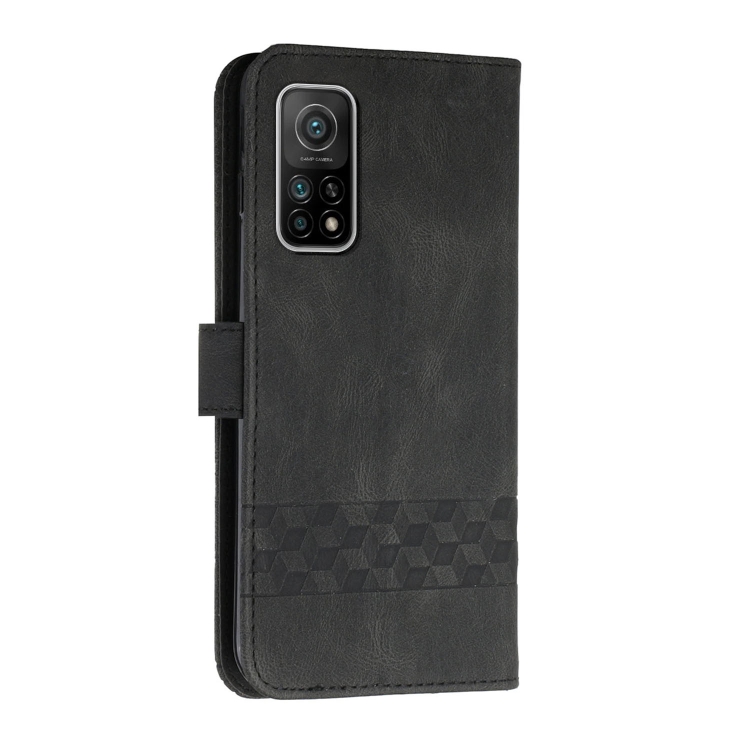 Para Xiaomi Mi 10T 5G Piel Cúbica Siente Funda de Teléfono de Cuero con Flip (Negro)