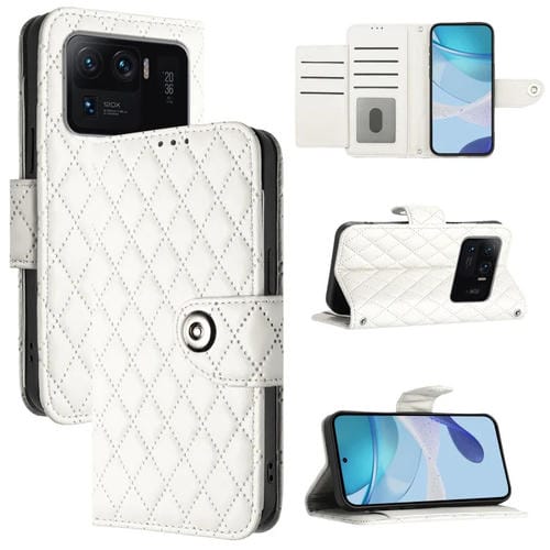 Para Xiaomi Mi 11 Ultra Rhombic Texture Funda de Cuero con Tapa para Teléfono con Cordón (Blanco)