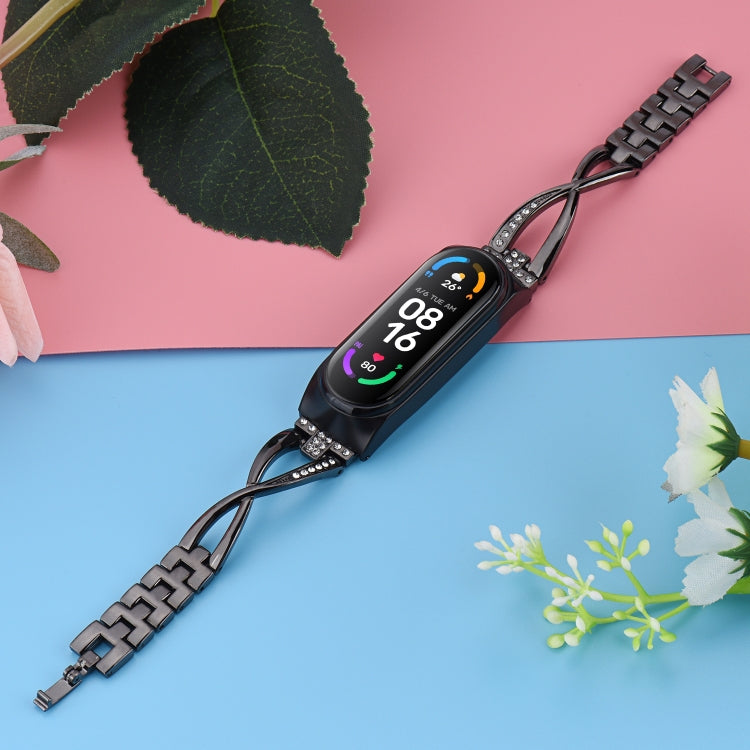 Para Xiaomi Mi Band 4/3 Band de Aleación de aleación de diamantes en forma de X (negro)