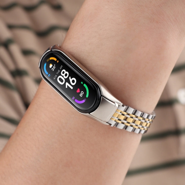 Para Xiaomi Mi Band 4/3 Band de vigilancia de acero inoxidable de siete cuentas (oro plateado)