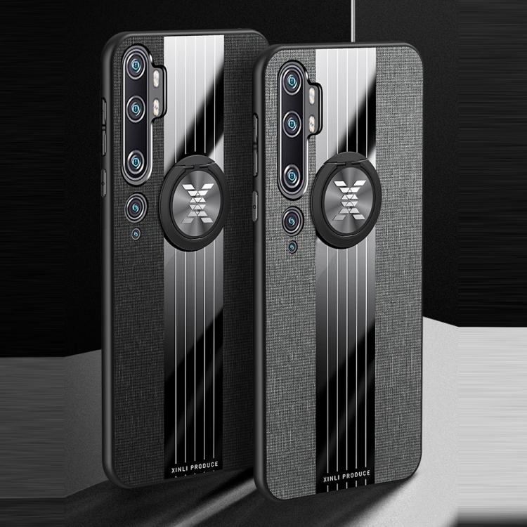 Para Xiaomi Mi Cc9 Pro Xinli Paño de Costura Textura TPU Funda Telefónica con Soporte de Anillo (Gris)
