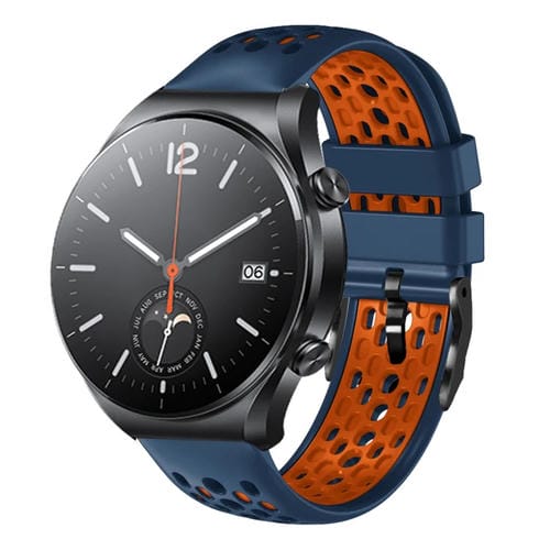 Banda de Reloj para Xiaomi Mi Watch S1 22mm Silicona Transpirable Dos Colores (Azul Medianoche + Naranja)