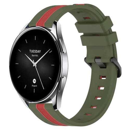 Banda de Reloj Xiaomi Mi Watch S2 42mm 22mm Silicona Dos Colores Vertical (Verde Militar + Rojo)