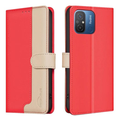 Para Xiaomi Poco C55 / Redmi 12C Funda para Teléfono de Cuero Antirrobo Rfid a Juego de Colores (Rojo)