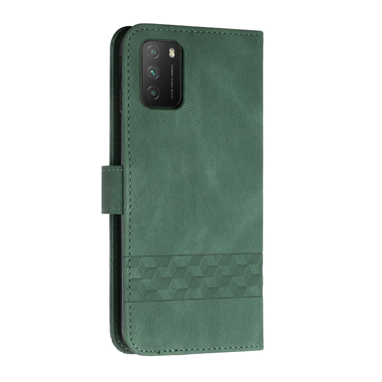 Para Xiaomi Poco F3 Piel Cúbica Siente la Caja del Teléfono de Cuero con Flip (Verde Oscuro)