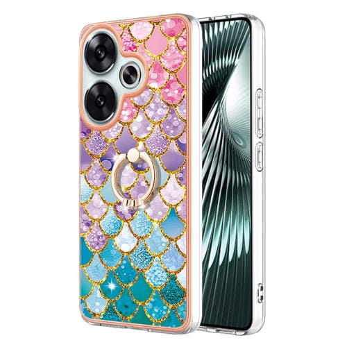 Para Xiaomi Poco F6 5G Estuche a Prueba de Golpes con Patrón de Galvanoplastia Imd TPU con Soporte de Anillo de Diamantes de Imitación (Escamas de Colores)