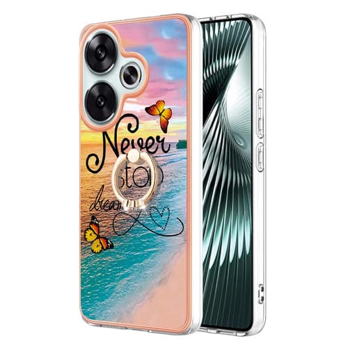 Para Xiaomi Poco F6 5G Estuche a Prueba de Golpes con Patrón de Galvanoplastia Imd TPU con Soporte de Anillo de Diamantes de Imitación (Mariposa Persiguiendo Sueños)